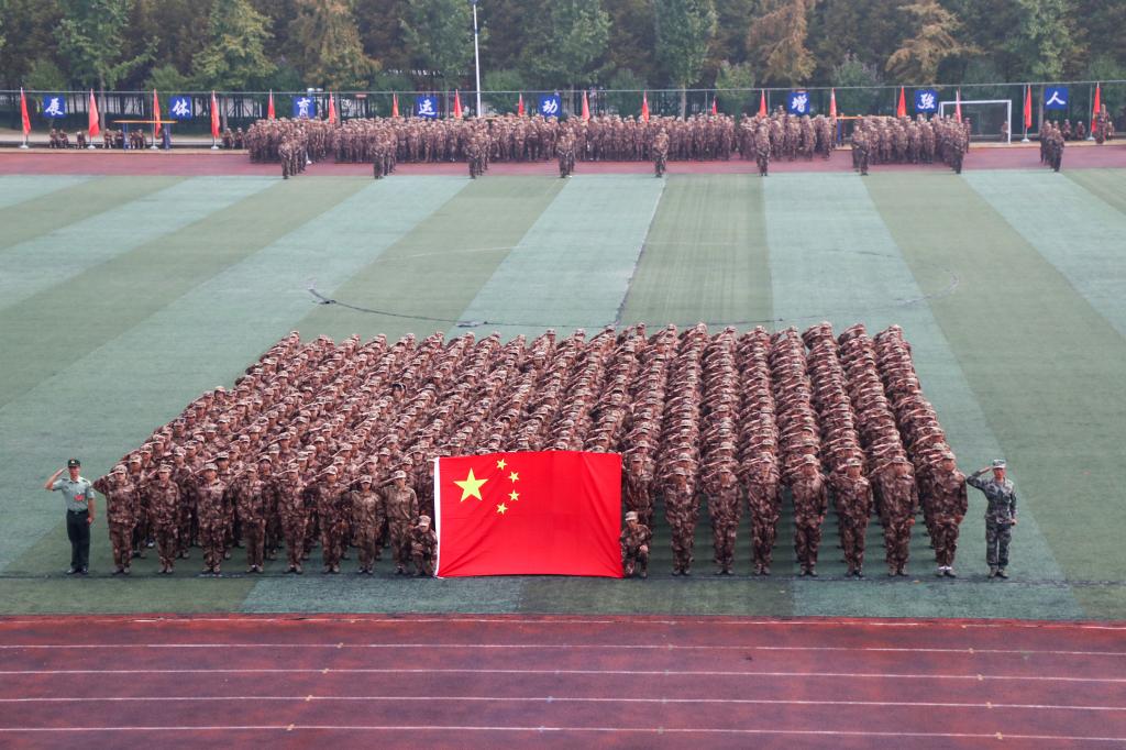 9月29日10点整,凤阳校区2021级的新生即将进行他们的军训汇报表演。在这金秋时节里,他们携笔从戎,谱写青春的壮歌。汇报表演在庄严的升国旗仪式中拉开帷幕。