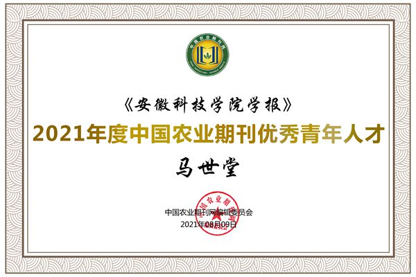10月26日,2021年度中国农业期刊学术年会发布了中国农业期刊评优结果。经单位申报、专家组资格审核、专家遴选和结果公示等程序,我校学报荣获“2021年度中国农业期刊优秀期刊”、马世堂博士荣获“2021年度中国农业期刊优秀青年人才”奖项。