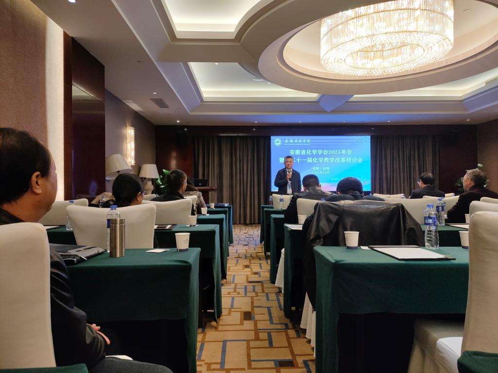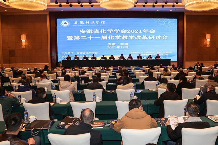 12月3日至5日,安徽省化学学会2021年会暨第二十一届化学教学改革研讨会在蚌埠顺利召开。本次会议的主题为《化学与安全》,会议由安徽省化学学会主办,安徽科技学院承办。中国科学技术大学、合肥工业大学、安徽大学、安徽师范大学、安徽工业大学、安徽理工大学等28所高校、15家企业及部分中学的200余名代表出席本次大会。