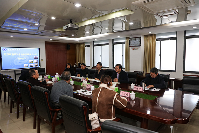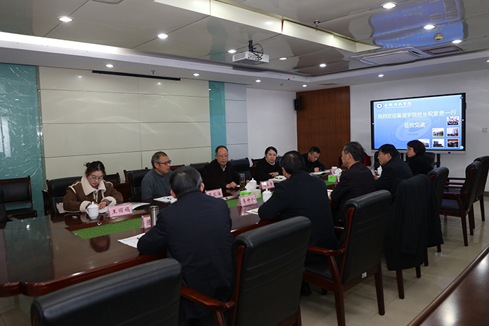 祝家贵对我校的热情接待表示感谢。他首先介绍了巢湖学院的基本情况,并就学科建设和硕士学位授予单位创建做了详细介绍。巢湖学院自2019年被安徽省确定为硕士学位授予立项建设单位以后,高度重视学科建设和硕士学位授予单位创建工作,不仅加强学科特色凝练,培育硕士学位授权点,加大学校内涵建设,促进学校高质量发展,而且已与西安体育学院等5所高校签订联合培养硕士研究生协议,并制定系列联合培养硕士研究生规章制度,从根本上保障联合培养研究生的培养质量。他希望,通过与安徽科技学院签订联合培养硕士研究生协议,可以对巢湖学院硕士学位授予单位创建及学科专业发展、人才培养质量提升产生较大促进作用,也希望双方能以此为契机,达到资源共享,实现优势互补,培养出更多更优秀的专业人才。