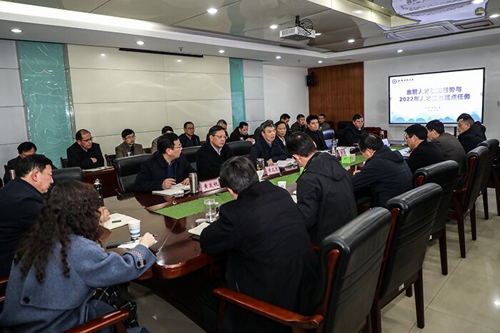 会议听取了人才工作办公室关于当前人才引进工作形势与2022年人才工作重点任务的汇报,与会人员对学校人才工作进行了充分讨论,提出了具体的意见和建议。(特约通讯员:常海军 摄影:陈宝 审核:卢星辰 姚文均 编辑:张威)
