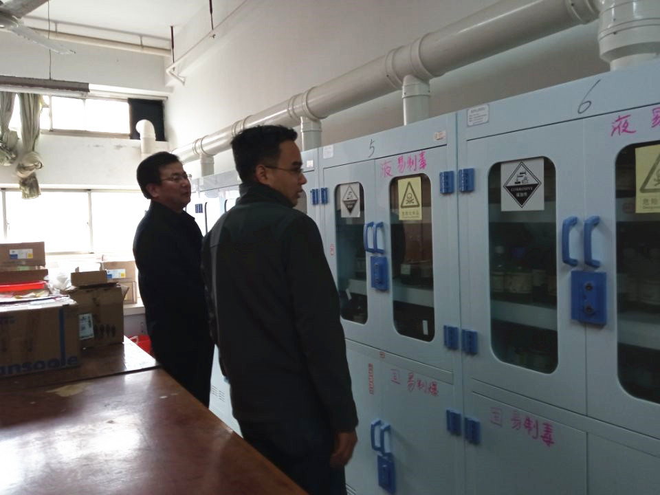 为有效落实安徽省教育厅关于全省教育系统危险化学品安全风险集中治理实施方案的通知及《安徽科技学院关于开展校园安全隐患排查和专项检查工作的通知》等文件精神,杜绝危险化学品管理安全事故发生。3月18日下午,校党委委员、副院长黄友锐深入学校相关学院实验室检查危险化学品安全管理情况,教务处处长赵伟峰、副处长周金星及教务处相关科室人员陪同检查。