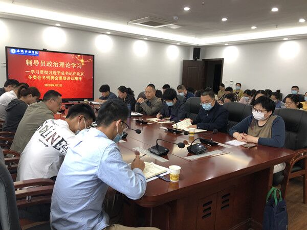 4月12日下午,我校在龙湖校区组织辅导员开展政治理论学习,主要学习习近平总书记在北京冬奥会冬残奥会总结表彰大会上的重要讲话精神,龙湖校区全体辅导员参加会议。会议由党委学工部副部长胡文靖主持。