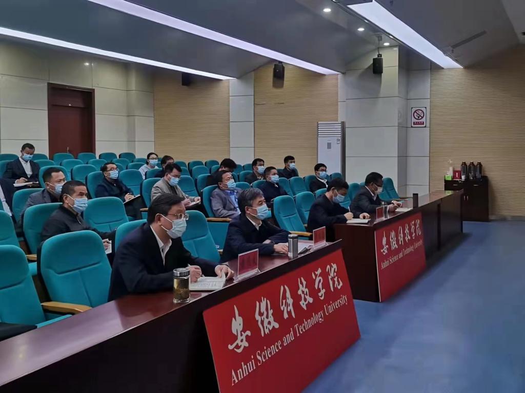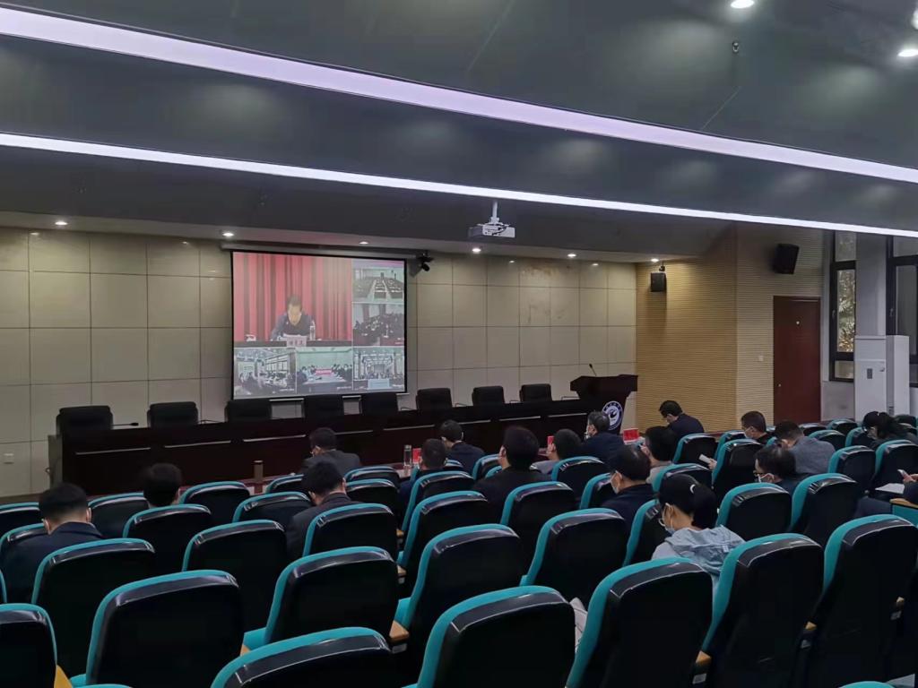 4月14日下午,我校在凤阳校区会议中心一楼报告厅设立分会场,参加由省教育厅召开的教育系统(九地市片区)疫情防控视频会议。校党委书记蒋德勤,党委副书记、院长李震,党委委员、副院长黄远友出席会议。