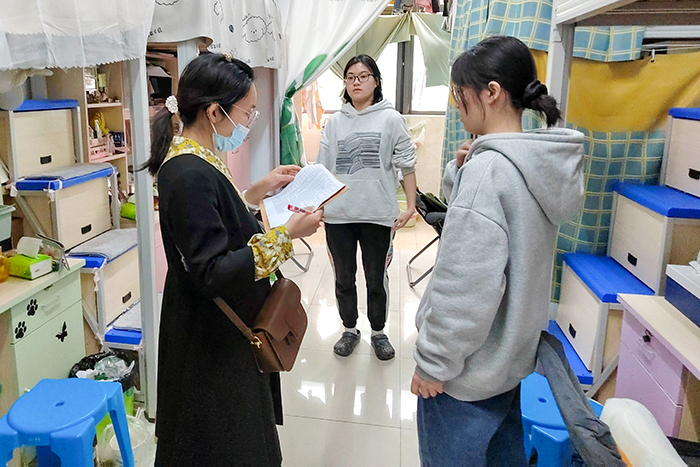 封校期间,学生有各种问题都会向老师咨询解决。辅导员王延丽、张成孜在此期间就深有体会。她们表示,五月份是心理问题的高发期,每一个辅导员在心里都紧绷着一根弦,生怕出现一些紧急情况无法处理。部分同学在此期间心理上的问题可能已经严重影响了日常正常的交往和学习,那这就需要接受治疗。但是在管控期间,协调工作起来难度很大,对于整个队伍来说都是一个挑战。