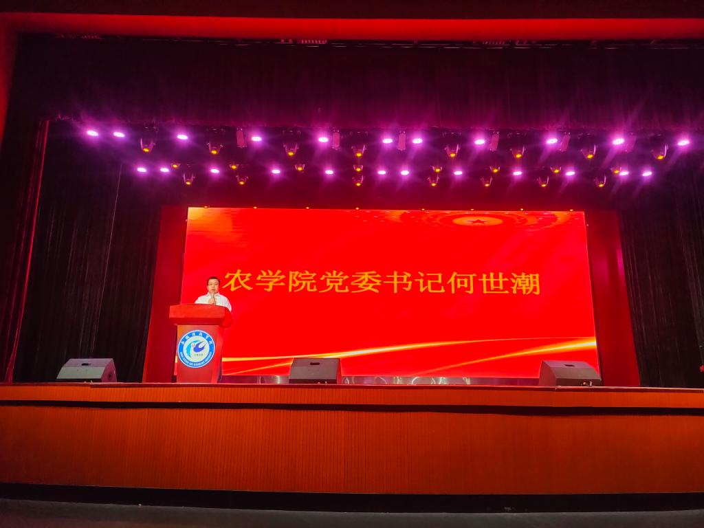 毕业典礼由农学院党委书记何世潮主持。何世潮代表农学院全体师生对蒋德勤、李震一行在百忙之中看望青年学生、欢送毕业生、指导农学院工作表示感谢,向即将踏上新征程的毕业生们致以最热烈的祝贺,寄语全体毕业生牢记习近平总书记的嘱托,与祖国同行、与时代共进,积极投身实现中华民族伟大复兴的中国梦的伟大实践,勇做走在时代前列的奋进者、开拓者、奉献者,在青春的赛道上跑出最好的成绩,让个人的青春在追梦奔跑中美丽绽放,用青春之我谱写奋斗华章。