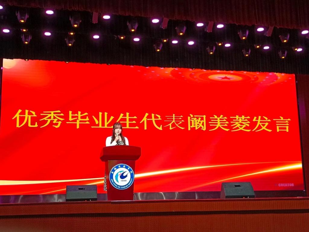 毕业典礼上,农学院党委副书记、院长崔广荣回顾了四年来学校的发展成就和农学院取得的成绩,期待同学们铭记校训师训,秉承优良传统,践行“兴农济世、务实创新”的农学精神,立德修身、勤奋学习、开拓创新,不断作出新业绩、创造新辉煌。以优异成绩被中国农业大学录取为研究生的农学专业阚美菱同学代表毕业生发言,深情表达了感谢、明志和祝愿的真挚情感。