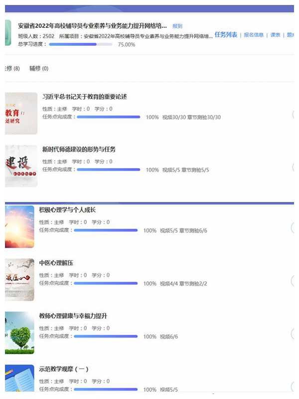 聚焦辅导员专业素养与业务能力提升。学校选派93名专兼职辅导员参加了安徽省2022年暑期高校辅导员专业素养与业务能力提升网络培训班。本次培训班采用线上培训方式进行,由教育部高校思想政治工作队伍培训研修中心(安徽师范大学) 和安徽省高校网络思想政治工作中心联合承办。培训班通过线上视频、线上直播等方式组织学习了《习近平总书记关于教育的重要论述》《新时代师德建设的形势与任务》《积极心理学与个人成长》等内容,有效开阔了广大辅导员理论视野、增强了辅导员育人情怀、坚定了育人使命。