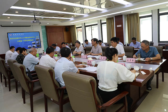 8月26日上午,滁州市人大常委会党组书记、主任王图强一行来校调研指导工作。党委书记蒋德勤,党委副书记、院长李震,党委委员、副院长黄远友,党委委员、纪委书记、监察专员王强出席座谈交流会,会议由蒋德勤主持。