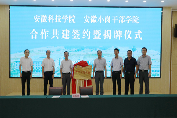 为深入贯彻落实习近平总书记在中国人民大学考察时的重要讲话精神和中共中央办公厅《关于加强新时代马克思主义学院建设的意见》,建强新时代马克思主义理论传播主阵地,推动高校与地方干部学院融合优势发挥。8月29日下午,安徽小岗干部学院与安徽科技学院马克思主义学院在小岗举行合作共建签约揭牌仪式。安徽科技学院马克思主义学院党总支书记杨仕勇、党总支副书记、院长张德化、副院长张栋、小岗干部学院常务副院长李新龙、副院长罗友和等出席并讲话,小岗干部学院副院长贾鸿彬主持会议。