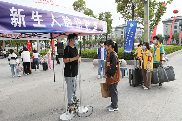 9月14日,在这秋高气爽的日子里,我校龙湖校区迎来了2022级新同学。早上8时,校党委书记蒋德勤,党委副书记、院长李震,党委委员、副院长黄远友,党委委员、纪委书记、监察专员王强在有关部门负责人的陪同下来到龙湖校区迎新现场,亲切看望慰问2022级新生及现场师生志愿者,详细了解新生报到情况,检查指导迎新工作。