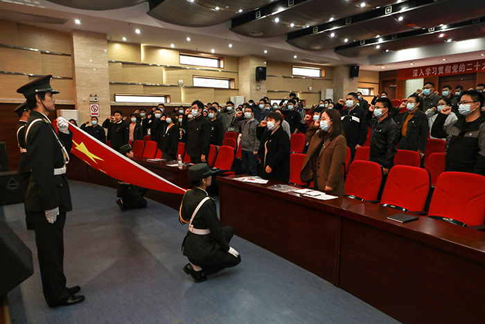 开班仪式上,食品工程学院新进教师李真博士作为新进教师代表发言,全体新进教师佩戴校徽面向国旗举行了庄严的入职宣誓仪式。(特约通讯员:吴双 摄影:陈宝 审核:卢星辰 编辑:张威)