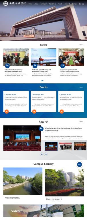 为进一步塑造学校国际新形象,提升国际传播影响力,安徽科技学院新版英文网站主页于12月2日上线试运行。
