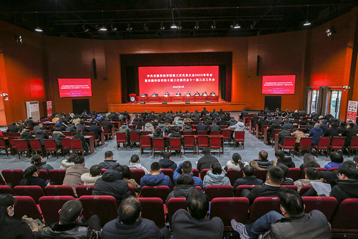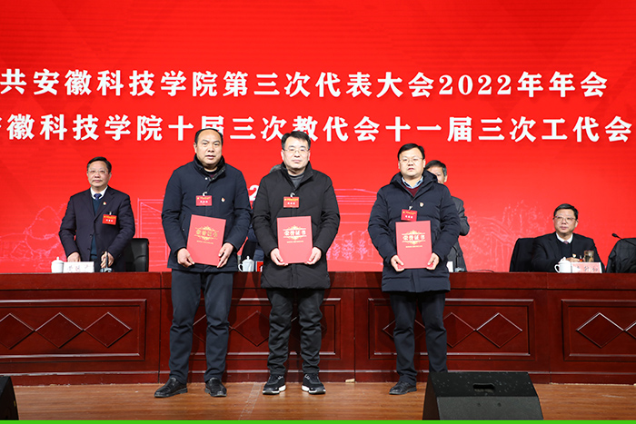 2月26日下午,我校第三次党代会2022年年会暨十届三次教代会、十一届三次工代会圆满完成各项议程,在大学生活动中心胜利闭幕。校党委书记蒋德勤出席会议并讲话,党委副书记、院长李震主持会议。党委委员、副院长黄远友,党委委员、副院长李升和,党委委员、机关党委书记卫胜,党委委员、党委组织部部长钱锐,党委委员、党委宣传(统战)部部长何永勇,校工会主席汪洋出席大会并在主席台就座,全体代表、列席人员参加大会。