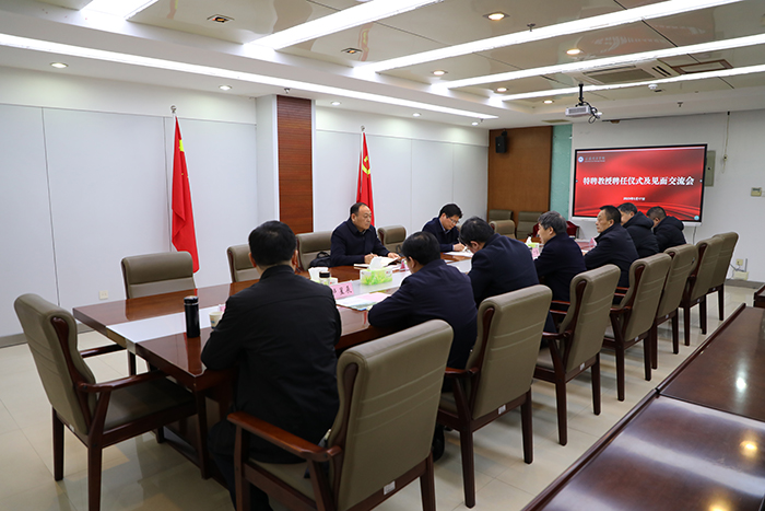 蒋德勤指出,聘任张其安、严从生为我校特聘教授,对于我校打造培育高峰学科、更好对接地方战略性新兴产业发展具有重要意义,同时对于我校人才培养、科学研究及社会服务必将发挥重要的推动和促进作用。蒋德勤强调,相关学院要加强合作,提前谋划,用好特聘教授资源,发挥人才最大效益,促进学科建设水平的提升。全校上下要认真学习领会党的二十大关于教育、科技、人才“三位一体”统筹部署的战略意义和深远影响,围绕学校第三次党代会确立的“三步走”战略目标,聚焦学校发展大局,进一步加深对学科建设重要性的认识,统筹做好人才服务工作。要围绕高峰学科建设,凝练学科发展方向,组建学科建设团队,立足前沿、立足地方经济社会发展,充分发挥优势与特色,不断推进学校发展上层次、上水平。随后,蒋德勤代表学校为张其安、严从生颁发了特聘教授聘书。