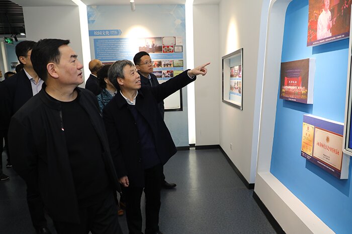 李和平听取了研究中心在科技创新、平台建设、服务地方经济建设等方面的工作成效汇报,并与相关人员进行深入交流。他对学校长期坚持发挥学科优势,支撑行业发展的工作实效给予充分肯定,并鼓励学校师生继续培育、产出、转化更多的科研成果,为安徽省经济社会发展作出更大贡献。在校史馆,调研组一行仔细聆听讲解,一同回顾了学校七十余年不断发展壮大的光辉历程。