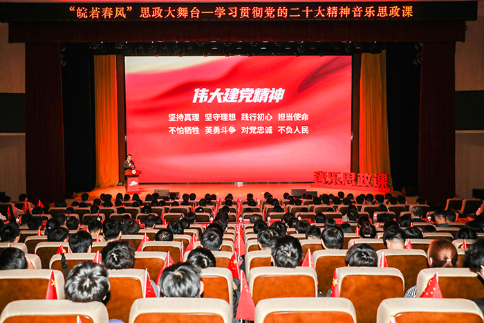 本次音乐思政课面向广大师生,通过群众喜闻乐见且折射历史意蕴、彰显信仰力量的优秀音乐影视作品,采用“音乐+思政”的创新方式,把学习和艺术审美叠加,把思政教育和视听作品结合,用艺术语言宣讲党的光辉奋斗历程和伟大历史变革,让党的二十大精神外化于形,内化于心。在娓娓道来的宣讲、感人肺腑的影片、悠扬奋进的音乐中,思政课变“理论灌输”为“音乐感染”,变“理论教育”为“精神大餐”, 融教育性、艺术性、欣赏性于一体,让党的二十大精神“声”入人心,使思政教育更加接地气、聚人气。