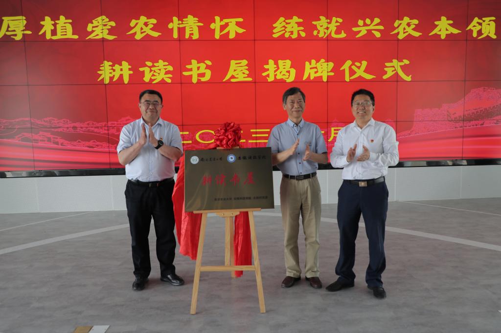 伴着《在耕读书屋播种心田》的朗诵声,耕读书屋揭牌仪式暨“小岗耕读”活动于6月3日上午在安徽农垦小岗生态农业综合服务中心如期举行。我校党委副书记、院长李震,党委委员、副院长李升和;南京农业大学党委常委、副校长董维春;凤阳县委常委、统战部部长、小岗村党委第一书记李锦柱等出席活动。活动由南京农业大学教务处处长张炜主持。