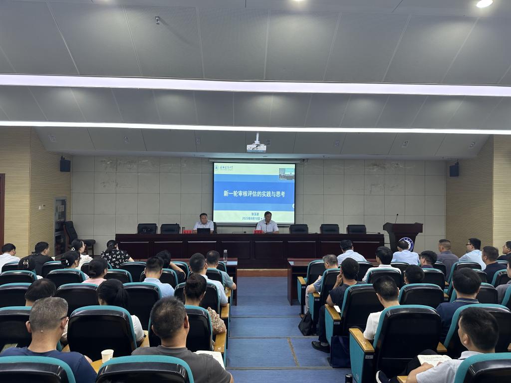 为深入推进新一轮审核评估自评自建工作,精准把握审核评估工作实施流程及注意事项,8月10日下午,学校邀请安徽建筑大学高等教育研究所副所长兼发展规划处副处长、评建办副主任张玉波博士在校会议中心一楼报告厅开展审核评估专题培训。校党委委员、副院长李升和出席会议,本科教育教学审核评估工作组组长,各职能部门负责人,教学院(部)书记、院长、分管教学副院长、各专业负责人、系(教研室)主任、实验室主任,教务处科级以上干部,审核评估办公室工作人员等以线上线下相结合的方式参加培训。培训会由李升和主持。