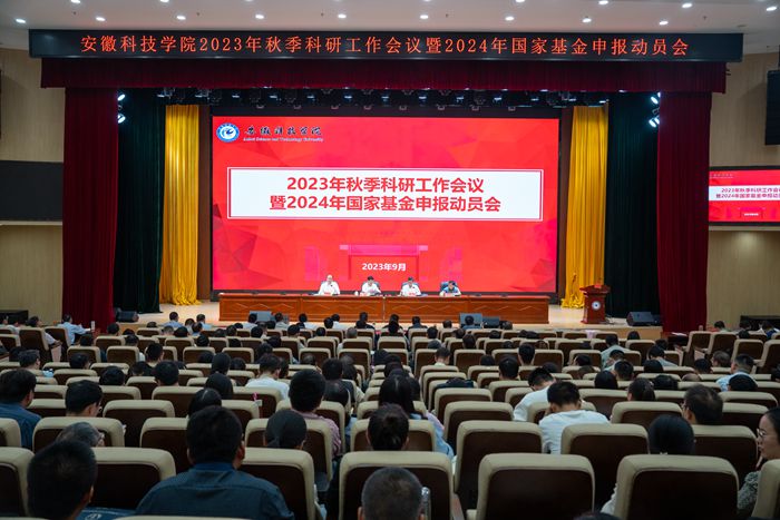9月27日下午,我校在龙湖校区综合信息中心东辅楼报告厅召开2023年秋季科研工作会议暨2024年国家基金申报动员会。校党委书记时伟,党委副书记、院长李震,党委委员、副院长王孝义出席会议。各教学单位党政及分管科研工作负责人、全校教授、具有博士学位教师、科研处全体人员共计400余人参加会议。会议由李震主持。
