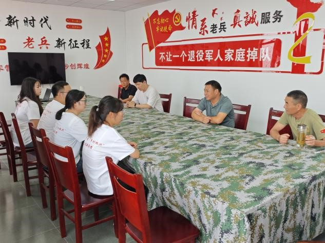 11日上午,实践团成员走入大湾村党群服务中心与大湾村党总支书记何家枝共话家常,共谈美丽大湾乡村发展。