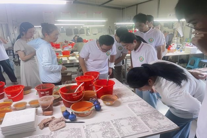 实践队员来到了凤阳洪武明三彩工艺品有限公司,受到园区负责人的热情迎接。在园区负责人的带领下,实践团体验了明三彩文化的制作工艺。明三彩是一种具有悠久历史的传统陶瓷工艺,其色彩鲜艳、造型独特,深受人们喜爱。同学们在工匠师傅的指导下,亲自动手制作了一些简单的明三彩作品,从中感受到了传统手工艺的魅力和制作过程的精细与复杂。
