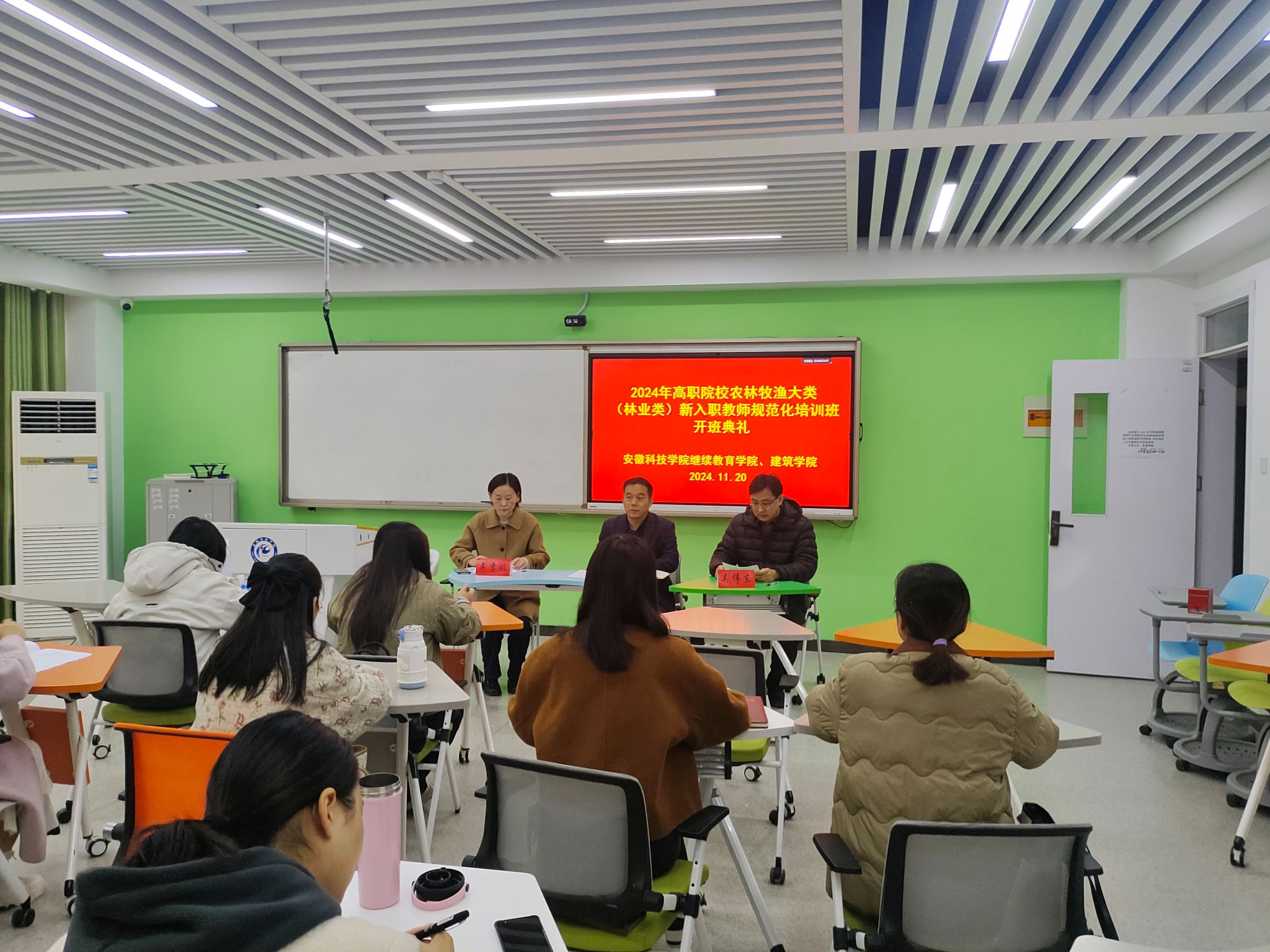 11月20日上午,由我校承办的安徽省高等职业院校农林牧渔大类(林业类)新入职教师规范化培训班在凤阳校区求知楼B302教室开班。继续教育学院院长李忠,建筑学院副院长吴伟东以及培训班班主任牟雪姣出席了开班仪式,仪式由吴伟东主持。