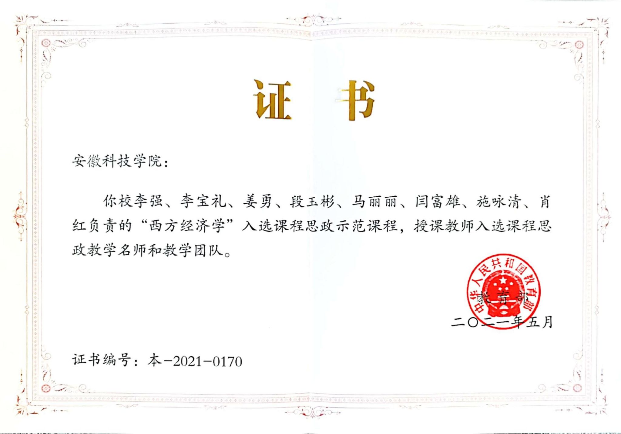 坚持不懈用习近平新时代中国特色社会主义思想铸魂育人,制定《安徽科技学院思政课程与课程思政协同育人实施办法》,成立思政课程与课程思政协同育人工作室,建立课程思政教学研究示范中心,构建协同育人机制。获批国家级课程思政示范课程1门,课程思政示范中心3个。大学体育“一贯制”课程改革入选安徽省2022年度教育评价改革优秀案例。创新“艺术+思政”教育模式,《美青年心 育青年志》案例荣获安徽省高校美育改革创新优秀案例三等奖。获批安徽省劳动教育研究重点课题1项。获批安徽省第一批省级学生劳动教育实践基地,并顺利通过验收。