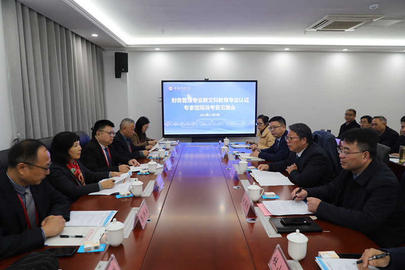12月8日至10日,根据长三角新文科教育专业认证联盟安排和部署,以上海立信会计金融学院教授王品玲为组长,江南大学朱和平教授,华东理工大学陈洪安教授,安徽工业大学王锴教授,上海对外经贸大学王如燕教授,南京工程学院刘颖教授,上海浦江会计师事务所高级会计师桂标为成员,上海应用技术大学助理研究员欧阳晶晶为项目管理员的长三角新文科教育专业认证专家组一行8人,对我校财务管理专业进行了为期3天的专业认证现场考查工作。