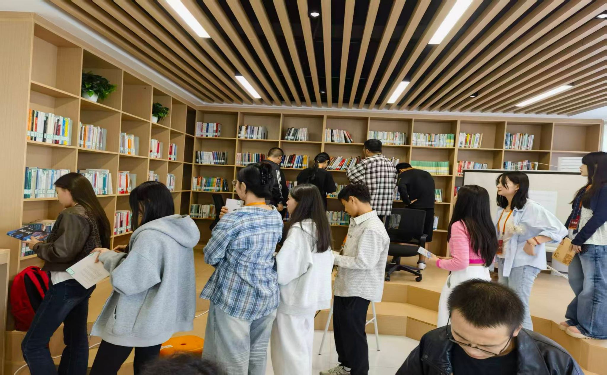 (图为驻村企业“中化农业”职工和我校赴村实训师生借阅场景)