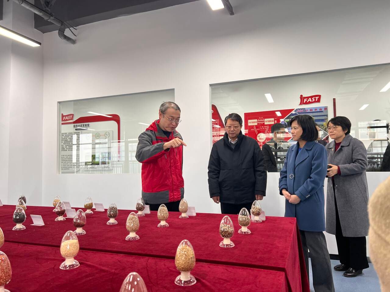 赵明一行首先参观了重点实验室展厅,系统了解了功能农业发展历程,实验室的重点科研方向、人才队伍建设、标志性成果、功能农业与功能食品创新产品及转化应用和双创人才培养等情况,实地察看了科学实验室、小试空间、种质资源库等研究平台。