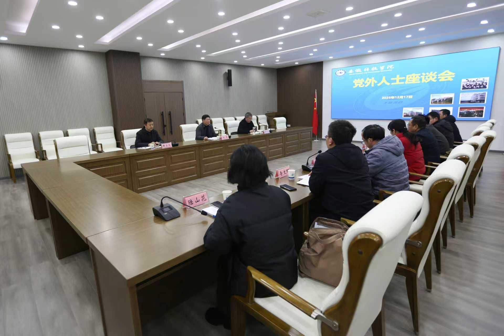 12月17日下午,学校在凤阳校区图书馆B多功能厅召开党外人士座谈会。党委书记时伟出席会议并讲话。党委副书记曹付忠主持会议。党委统战部、民盟安徽科技学院总支、民进安徽科技学院支部、九三学社安徽科技学院支社,校知联会、校侨(留)联负责人、农工党党员、无党派人士代表等参加会议。