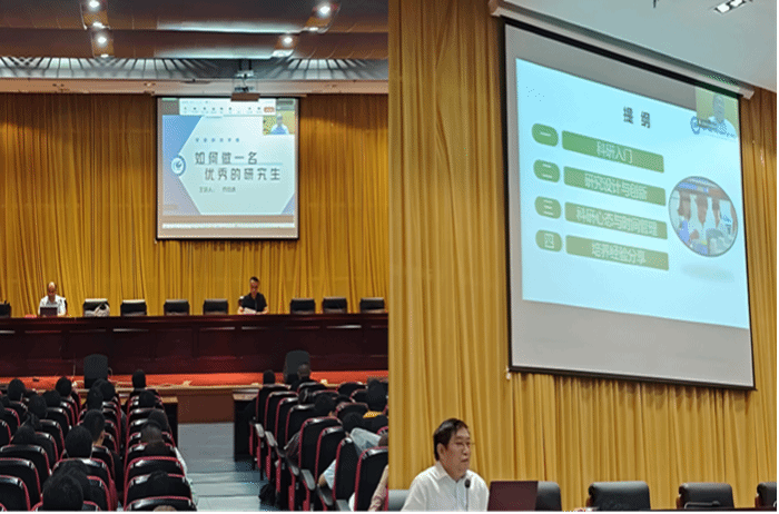 首场专题讲座由省级研究生教学名师乔印虎教授主讲,他以“如何做好一个优秀的研究生”为题,为同学们指明了研究生阶段的学习方向与成长路径。第二场由全国模范教师黄先忠教授作了题为“研究生如何有效开展科研工作”的专题分享,从科研方法与实践角度给予细致指导。