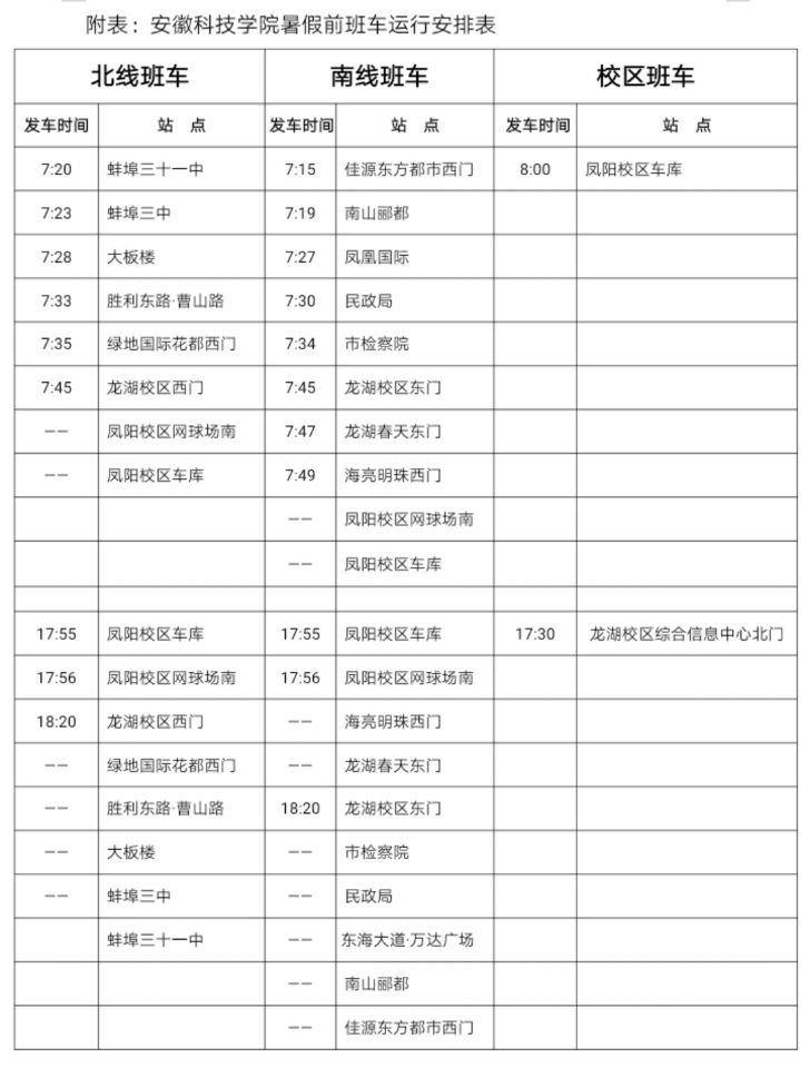 1、南北线班车各站点早上推迟半小时、晚上提前半小时发车。