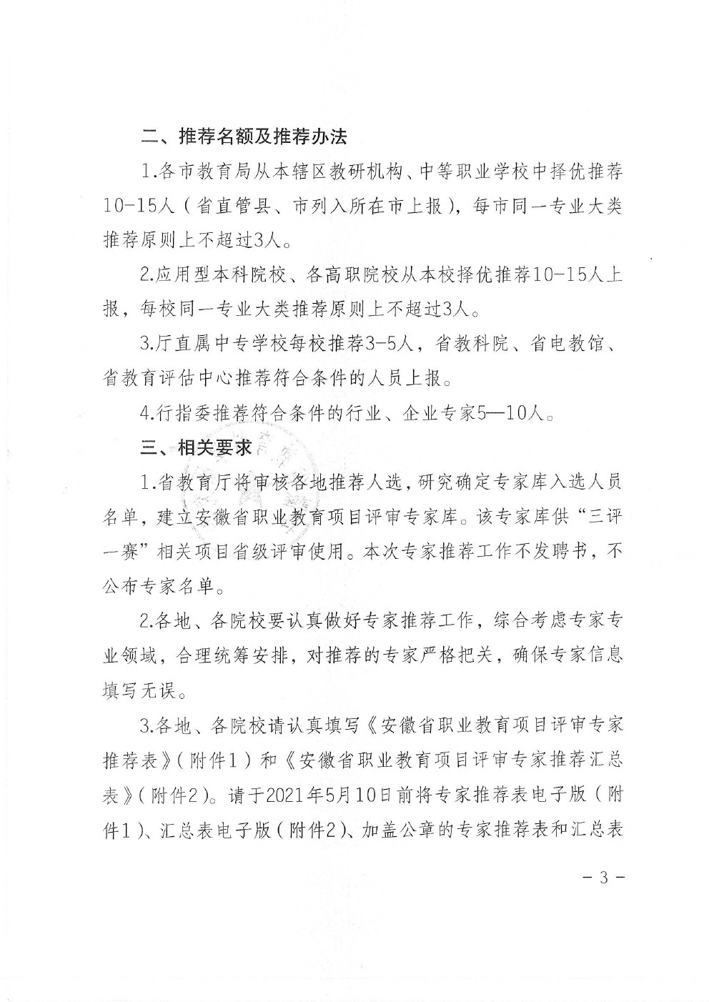 关于推荐安徽省职业教育项目评审专家库人选的通知