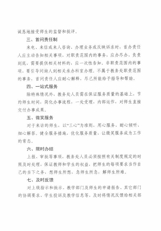 1.出具学籍学历证明材料,补办毕业证明书和学位证明书; 2.补办学生证; 3.全校性公共选修课选课,线上课程维护; 4.教学工作量核算; 5.调停课及教室借用审批。 |