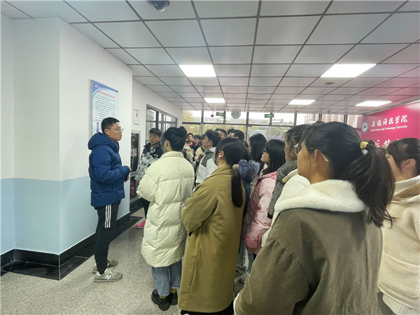 汪雁在带领21级生物制药新生参观躬行楼8号楼实验室时强调,同学们无论身处何地,一定不能忘记学习的重要性。汪雁表示,将技术转换成应用,转换成能够落地的实验成果,才是同学们最需要学习的能力;在专业上下的功夫,绝不是死记硬背,而是要真正地理解贯彻。