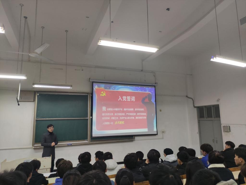 赵传磊从“党的基本知识”“大学生为什么要入党”“大学生如何端正入党动机”以及“入党程序注意事项”等四个方面为大家讲解了入党知识。他强调,今年是中国共产党成立100周年,百年恰是风华正茂,广大同学要坚定理想信念,端正入党动机,认真学习党的基本理论和基本知识,认真学习党史、新中国史、改革开放史、社会主义发展史,体悟和深刻认识党的百年奋斗的初心使命和重大成就,刻苦学习专业知识,积极实践,以实际行动积极向党组织靠拢。要进一步增强“四个意识”、坚定“四个自信”、做到“两个维护”,进一步增强爱党爱国爱社会主义情怀,培育和践行社会主义核心价值观,坚持感党恩、听党话、跟党走。