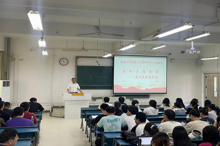 自9月1日起,食品工程学院以课程形式,开展了为期一周的2023级研究生新生入学教育系列活动。期间,先后开展了新生游校园、优秀毕业生报告会、安全健康教育、研究生手册学习、培养方案解读会、科技创新团队学术报告与特色介绍、我与院长面对面、学术报告会、青年博士与学子话成长等系列活动。
