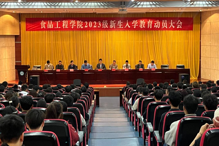 翟立公向同学们详细介绍了学科建设情况,郑海波介绍了专业设置情况,提高了大家对所学学科专业的进一步认识。陈春旭作为教师代表发言,勉励同学们要接续努力奋斗。本科生老生代表孟雨、新生代表李诗雅,研究生老生代表何芮迪、新生代表杜强相继发言。会上,赵传磊宣读了《食品工程学院2023级新生入学教育方案》。大会还邀请了2000届食品营养与教育专业毕业生、南京农业大学食品科学技术学院院长、博士生导师、国家肉品质量安全控制工程技术研究中心常务副主任李春保教授为代表的一批优秀校友以微视频的方式寄语广大新生。