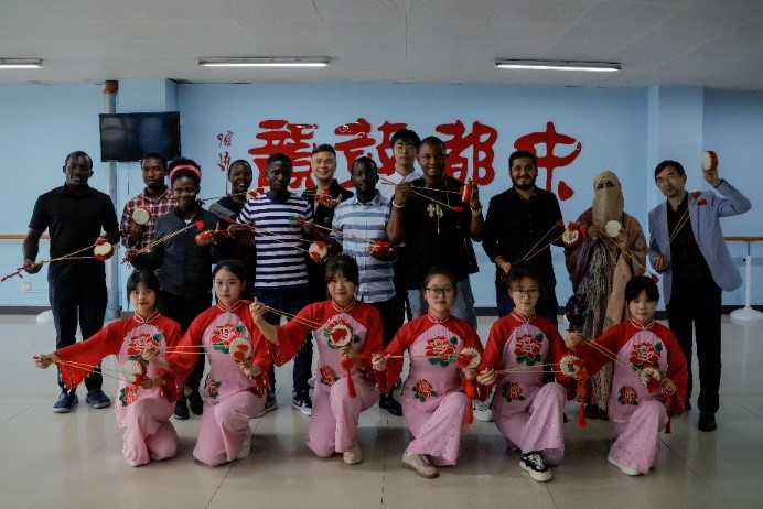 10月11日下午,我校组织留学生开展中华优秀传统文化体验活动,9名分别来自加纳、乌干达、尼日利亚、巴基斯坦的留学生走进我校非物质文化遗产传承基地,在花鼓艺术团的带领下,沉浸式体验非遗,感受中国传统文化的魅力。