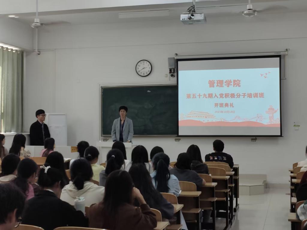 为深入学习贯彻党的二十大精神,引导入党积极分子端正入党动机,提高党性修养,更积极地向党组织靠拢。10月18日下午,管理学院在龙湖校区致知楼C107教室举行了第59期入党积极分子培训班开班仪式。学院党政领导、各党支部书记和96名第59期入党积极分子参加开班仪式,仪式由专职辅导员黄斐主持。