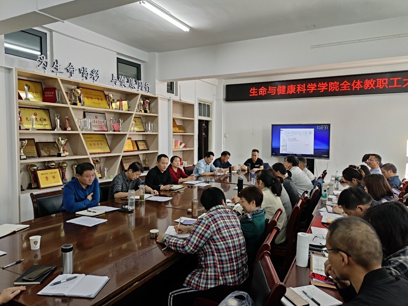 10月18日下午,生命与健康科学学院在学知楼417会议室召开全体教职工会议,推进科技创新等重点工作任务落实。学院党政领导和全体教师参加会议。会议由学院党委副书记(主持工作)张传德主持。