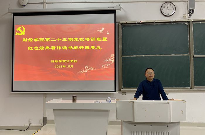 10月25日下午,财经学院分党校第25期党校培训班暨红色经典著作读书班开班典礼在致知楼C111举行。学院党委副书记、纪委书记耿广汉出席会议,学生入党积极分子参加会议。会议由学院党政办主任张俊主持。