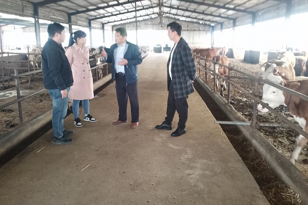 支部党员教师庞训胜教授、省肉牛产业技术体系岗位专家王淑娟副教授和阿地力·阿不来提博士在牛场负责人王亚楠的陪同下,实地调研了肉牛养殖情况,并深入了解了当前肉牛繁殖性能、犊牛成活率等基本情况以及当前生产中存在的主要问题。庞训胜和王淑娟对繁育母牛饲养管理、饲料配制、母牛配种及产后护理等方面进行了详细指导。