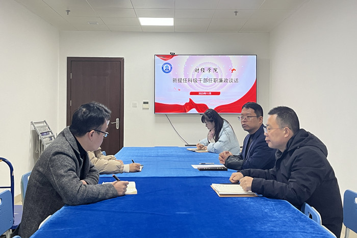11月13日上午,财经学院在西附楼212会议室开展新提任科级干部任职廉政谈话。学院党政领导和新提任的两位科级干部参加会议。