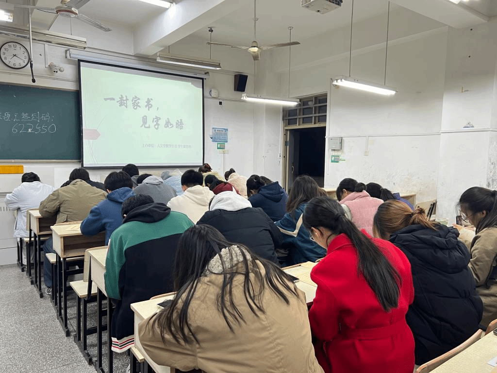 为传承百善孝为先的传统美德,弘扬中华优秀传统文化,11月14日晚,人文学院在求知楼A301开展“一封家书,见字如晤”感恩主题教育。学院辅导员老师和2023级部分同学参加,活动由21级汉语言文学专业张波涛主持。