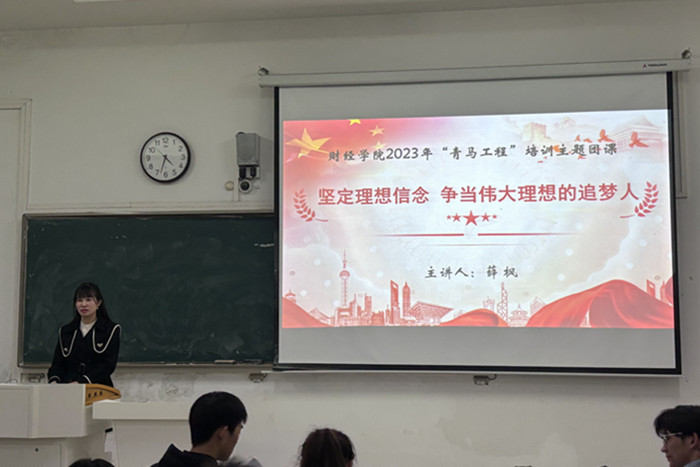 为深入学习宣传贯彻党的二十大精神,落实好习近平总书记关于青年工作的重要思想,11月15日下午,财经学院在致知楼A108教室开展2023年“青马工程”大学生骨干培训班主题团课宣讲活动。财经学院团委书记薛枫担任主讲人,学院共百余名学生参加培训。