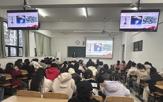 薛枫以“坚定理想信念,争做伟大理想的追梦人”为题,结合具体事例带领同学们了解中国共青团百年来始终与党同心、跟党奋斗的青春历程。从新民主主义革命时期不怕牺牲、浴血奋斗,到社会主义革命和建设时期敢于拼搏、辛勤劳动,到改革开放和社会主义现代化建设新时期敢闯敢干、引领风尚,再到中国特色社会主义新时代自信自强、刚健有为,中国共青团始终团结带领广大团员青年坚定信念、紧跟党走,为争取民族独立、人民解放和实现国家富强、人民幸福而贡献力量。她希望同学们胸怀大局,担当时代责任;无私奉献,锤炼品德修为;弘扬传统,勇于砥砺奋斗;艰苦创业,练就过硬本领;在全面建设社会主义现代化国家、实现中华民族伟大复兴的宏伟征程中书写新时代中国青年的光辉篇章。