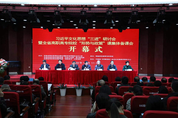 桐城师专党委副书记、纪委书记张敏丽主持会议,桐城师专党委书记王子龙致欢迎辞。安徽省教育厅思想政治工作处处长王后林强调要做好2023年度高校思政课教师信息库更新、思政课教师教学能力提升行动、推进“大思政课”建设、贯彻落实《普通高等学校马克思主义学院建设标准(2023年版)》、用好全省网络思政中心平台等近期重点工作;中宣部《时事报告》杂志社原总编辑、高级编辑曹勃亚作了《把有意义讲得有意思》专题报告;安徽省社科联秘书长韩修良围绕“深入学习贯彻习近平文化思想”作专题报告;安徽省高校网络思政中心常务副主任郑健就如何使用好安徽省智慧思政课平台作了专题讲座。全省高校思政课教指委“形势与政策”分教指委主任黄洪雷和全省高校思政课教指委办公室主任、高职高专分教指委主任董玉节分别就习近平文化思想进教材、进课堂、进头脑,提高“形势与政策”课教育教学水平提出相关要求。